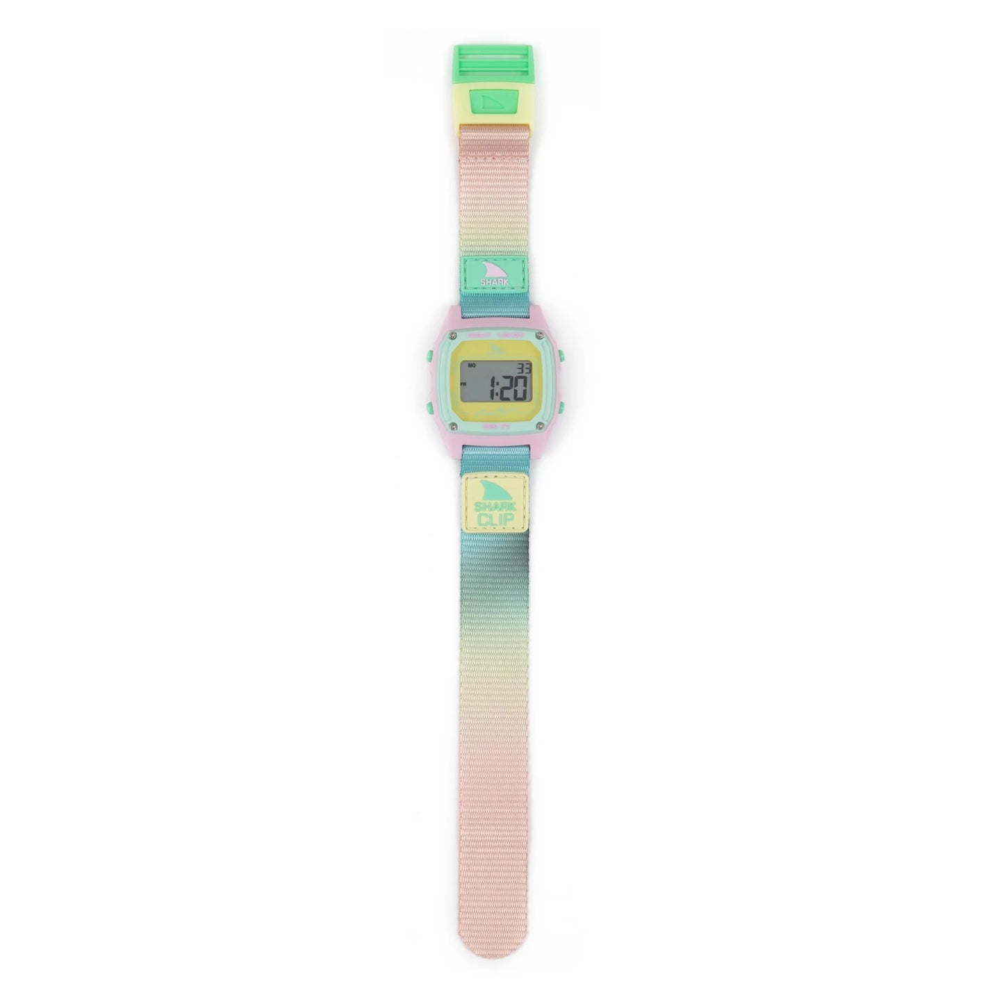 Soft pastels and ocean hues come together in the Scenic Sky digital watch, inspired by the way the sky melts into the horizon at sunset. Its smooth gradient strap and fresh color palette make it the perfect blend of calm and adventure. Designed for life on land and in the water, it features Freestyles Shark Clip closure, 300 feet of water resistance, and all the essentialsnight vision backlight, dual time, alarms, and a stopwatch. Sunsets fade, but the vibe lives on. Inspired by the Pacific sky at dusk, Sunset Beach Collection channels golden-hour magic with soft ocean blues and warm, glowing gradients.